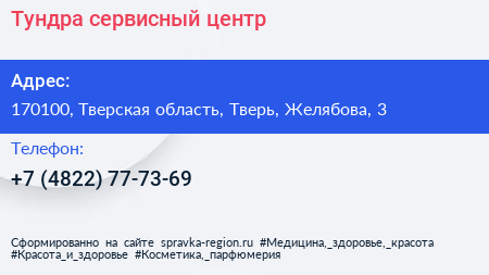 Тундра, сервисный центр по адресу 170100, Тверская область, Тверь, Желябова, 3 в дальнейшем Организация, размещена в следующих категориях: