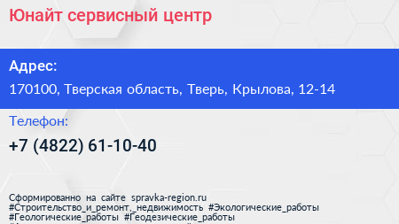 Юнайт, сервисный центр по адресу 170100, Тверская область, Тверь, Крылова, 12-14 в дальнейшем Организация, размещена в следующих категориях: