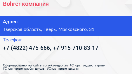 Bohrer, компания по адресу Тверская область, Тверь, Маяковского, 31 в дальнейшем Организация, размещена в следующих категориях: