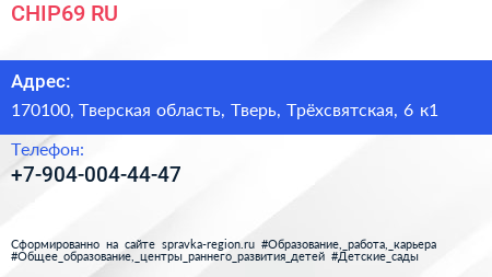 CHIP69.RU по адресу 170100, Тверская область, Тверь, Трёхсвятская, 6 к1 в дальнейшем Организация, размещена в следующих категориях: