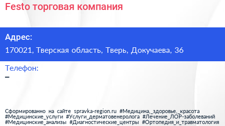 Festo, торговая компания по адресу 170021, Тверская область, Тверь, Докучаева, 36 в дальнейшем Организация, размещена в следующих категориях: