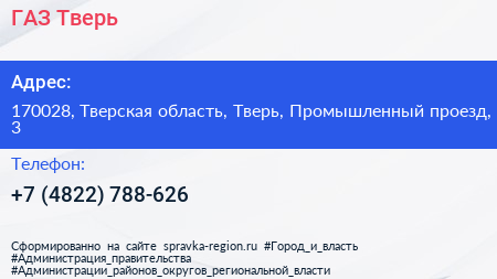 ГАЗ-Тверь по адресу 170028, Тверская область, Тверь, Промышленный проезд, 3 в дальнейшем Организация, размещена в следующих категориях: