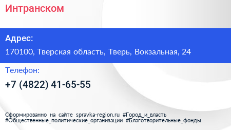 Интранском по адресу 170100, Тверская область, Тверь, Вокзальная, 24 в дальнейшем Организация, размещена в следующих категориях: