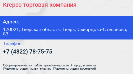 Krepco, торговая компания по адресу 170021, Тверская область, Тверь, Скворцова-Степанова, 83 в дальнейшем Организация, размещена в следующих категориях:
