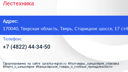 Лестехника по адресу 170040, Тверская область, Тверь, Старицкое шоссе, 17 ст4 в дальнейшем Организация, размещена в следующих категориях: