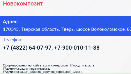Новокомпозит по адресу 170043, Тверская область, Тверь, шоссе Волоколамское, 80 в дальнейшем Организация, размещена в следующих категориях: