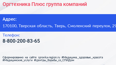 Оргтехника Плюс, группа компаний по адресу 170100, Тверская область, Тверь, Смоленский переулок, 29 в дальнейшем Организация, размещена в следующих категориях: