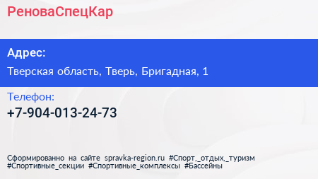 РеноваСпецКар по адресу Тверская область, Тверь, Бригадная, 1 в дальнейшем Организация, размещена в следующих категориях: