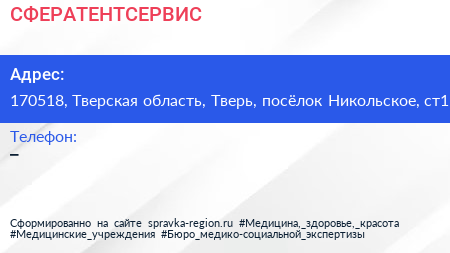 СФЕРАТЕНТСЕРВИС по адресу 170518, Тверская область, Тверь, посёлок Никольское, ст1 в дальнейшем Организация, размещена в следующих категориях: