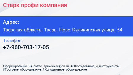Старк-профи, компания по адресу Тверская область, Тверь, Ново-Каликинская улица, 54 в дальнейшем Организация, размещена в следующих категориях: