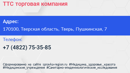 ТТС, торговая компания по адресу 170100, Тверская область, Тверь, Пушкинская, 7 в дальнейшем Организация, размещена в следующих категориях: