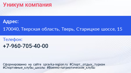 Уникум, компания по адресу 170040, Тверская область, Тверь, Старицкое шоссе, 15 в дальнейшем Организация, размещена в следующих категориях: