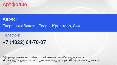 Артфолио по адресу Тверская область, Тверь, Кривцово, 84а в дальнейшем Организация, размещена в следующих категориях: