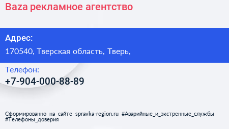 Baza, рекламное агентство по адресу 170540, Тверская область, Тверь, в дальнейшем Организация, размещена в следующих категориях: