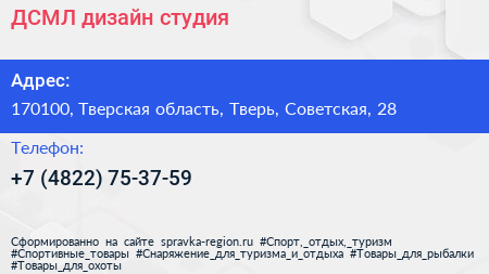 ДСМЛ, дизайн-студия по адресу 170100, Тверская область, Тверь, Советская, 28 в дальнейшем Организация, размещена в следующих категориях: