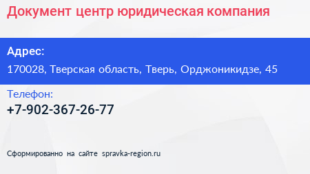Документ-центр, юридическая компания по адресу 170028, Тверская область, Тверь, Орджоникидзе, 45 в дальнейшем Организация, размещена в следующих категориях: