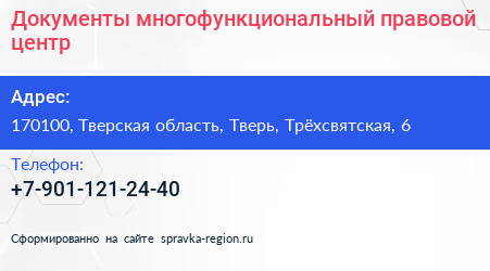 Документы, многофункциональный правовой центр по адресу 170100, Тверская область, Тверь, Трёхсвятская, 6 в дальнейшем Организация, размещена в следующих категориях: