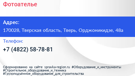 Фотоателье по адресу 170028, Тверская область, Тверь, Орджоникидзе, 48а в дальнейшем Организация, размещена в следующих категориях: