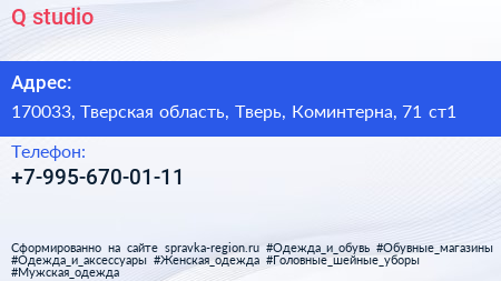 Q - studio по адресу 170033, Тверская область, Тверь, Коминтерна, 71 ст1 в дальнейшем Организация, размещена в следующих категориях: