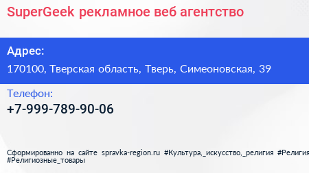 SuperGeek, рекламное веб-агентство по адресу 170100, Тверская область, Тверь, Симеоновская, 39 в дальнейшем Организация, размещена в следующих категориях: