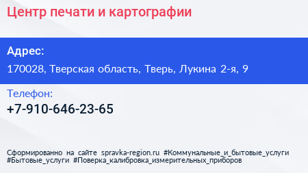 Центр печати и картографии по адресу 170028, Тверская область, Тверь, Лукина 2-я, 9 в дальнейшем Организация, размещена в следующих категориях: