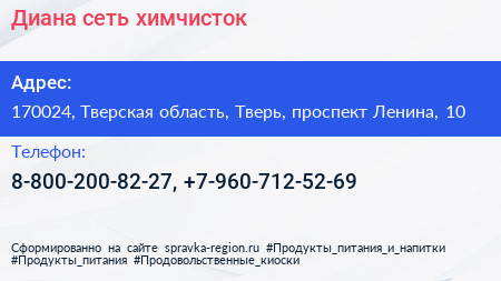 Диана, сеть химчисток по адресу 170024, Тверская область, Тверь, проспект Ленина, 10 в дальнейшем Организация, размещена в следующих категориях: