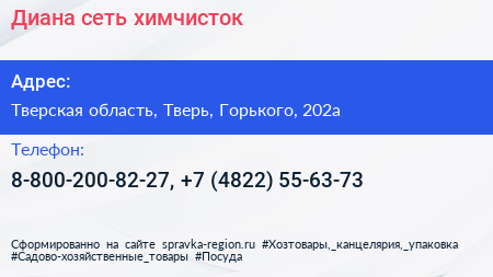 Диана, сеть химчисток по адресу Тверская область, Тверь, Горького, 202а в дальнейшем Организация, размещена в следующих категориях:
