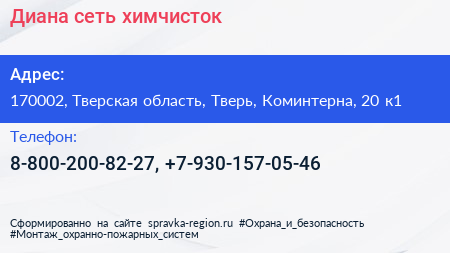 Диана, сеть химчисток по адресу 170002, Тверская область, Тверь, Коминтерна, 20 к1 в дальнейшем Организация, размещена в следующих категориях: