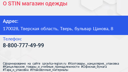 O`STIN, магазин одежды по адресу 170028, Тверская область, Тверь, бульвар Цанова, 8 в дальнейшем Организация, размещена в следующих категориях: