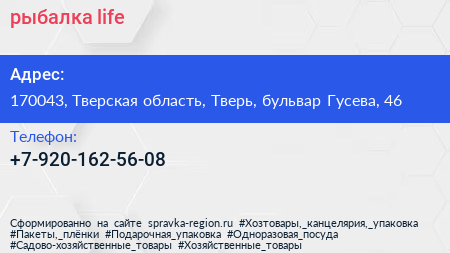рыбалка#life по адресу 170043, Тверская область, Тверь, бульвар Гусева, 46 в дальнейшем Организация, размещена в следующих категориях: