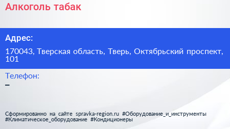 Алкоголь & табак по адресу 170043, Тверская область, Тверь, Октябрьский проспект, 101 в дальнейшем Организация, размещена в следующих категориях: