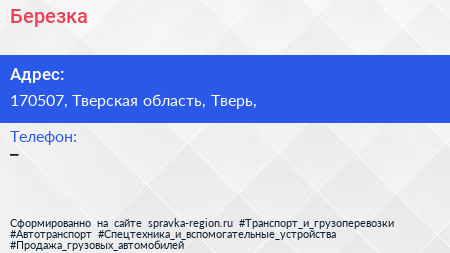 Березка по адресу 170507, Тверская область, Тверь, в дальнейшем Организация, размещена в следующих категориях: