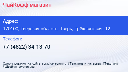 ЧайКофф, магазин по адресу 170100, Тверская область, Тверь, Трёхсвятская, 12 в дальнейшем Организация, размещена в следующих категориях: