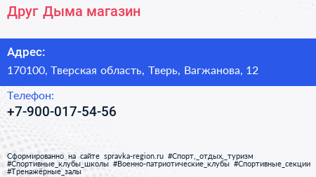 Друг Дыма, магазин по адресу 170100, Тверская область, Тверь, Вагжанова, 12 в дальнейшем Организация, размещена в следующих категориях: