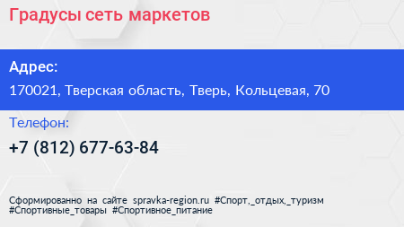 Градусы, сеть маркетов по адресу 170021, Тверская область, Тверь, Кольцевая, 70 в дальнейшем Организация, размещена в следующих категориях: