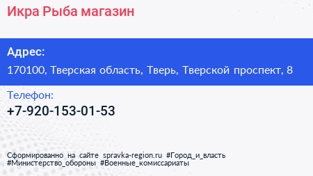 Икра & Рыба, магазин по адресу 170100, Тверская область, Тверь, Тверской проспект, 8 в дальнейшем Организация, размещена в следующих категориях: