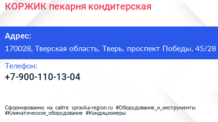 КОРЖИК, пекарня-кондитерская по адресу 170028, Тверская область, Тверь, проспект Победы, 45/28 в дальнейшем Организация, размещена в следующих категориях: