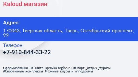 Kaloud, магазин по адресу 170043, Тверская область, Тверь, Октябрьский проспект, 99 в дальнейшем Организация, размещена в следующих категориях: