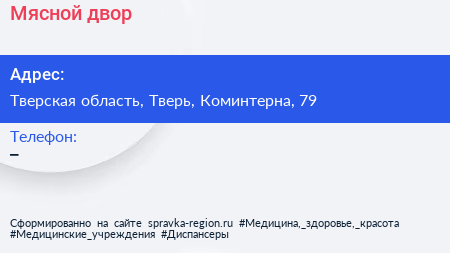 Мясной двор по адресу Тверская область, Тверь, Коминтерна, 79 в дальнейшем Организация, размещена в следующих категориях: