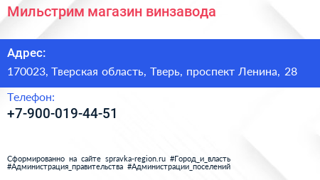 Мильстрим, магазин винзавода по адресу 170023, Тверская область, Тверь, проспект Ленина, 28 в дальнейшем Организация, размещена в следующих категориях: