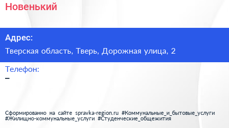 Новенький по адресу Тверская область, Тверь, Дорожная улица, 2 в дальнейшем Организация, размещена в следующих категориях:
