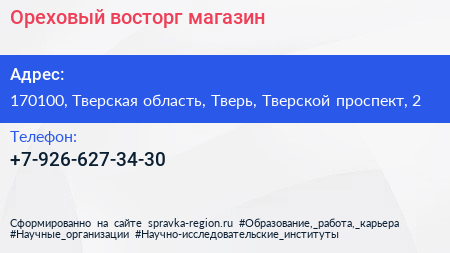Ореховый восторг, магазин по адресу 170100, Тверская область, Тверь, Тверской проспект, 2 в дальнейшем Организация, размещена в следующих категориях: