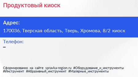 Продуктовый киоск по адресу 170036, Тверская область, Тверь, Хромова, 8/2 киоск в дальнейшем Организация, размещена в следующих категориях: