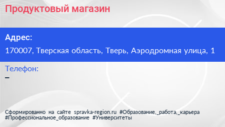 Продуктовый магазин по адресу 170007, Тверская область, Тверь, Аэродромная улица, 1 в дальнейшем Организация, размещена в следующих категориях: