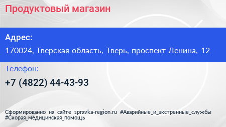 Продуктовый магазин по адресу 170024, Тверская область, Тверь, проспект Ленина, 12 в дальнейшем Организация, размещена в следующих категориях: