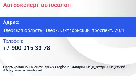 Автоэксперт, автосалон по адресу Тверская область, Тверь, Октябрьский проспект, 70/1 в дальнейшем Организация, размещена в следующих категориях: