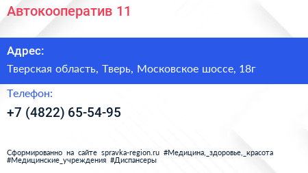Автокооператив №11 по адресу Тверская область, Тверь, Московское шоссе, 18г в дальнейшем Организация, размещена в следующих категориях: