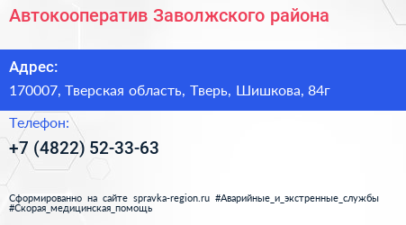 Автокооператив Заволжского района по адресу 170007, Тверская область, Тверь, Шишкова, 84г в дальнейшем Организация, размещена в следующих категориях: