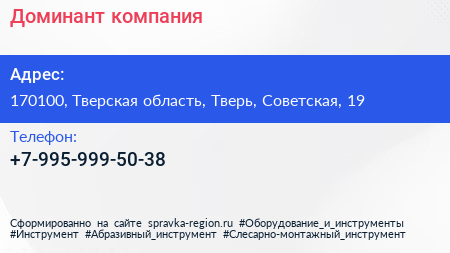 Доминант, компания по адресу 170100, Тверская область, Тверь, Советская, 19 в дальнейшем Организация, размещена в следующих категориях: