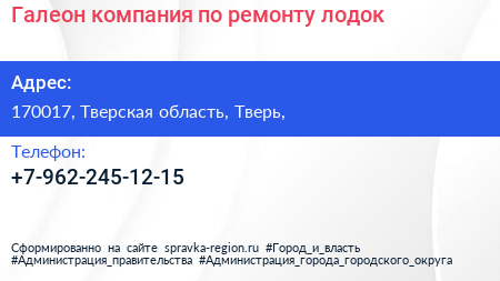 Галеон, компания по ремонту лодок по адресу 170017, Тверская область, Тверь, в дальнейшем Организация, размещена в следующих категориях:
